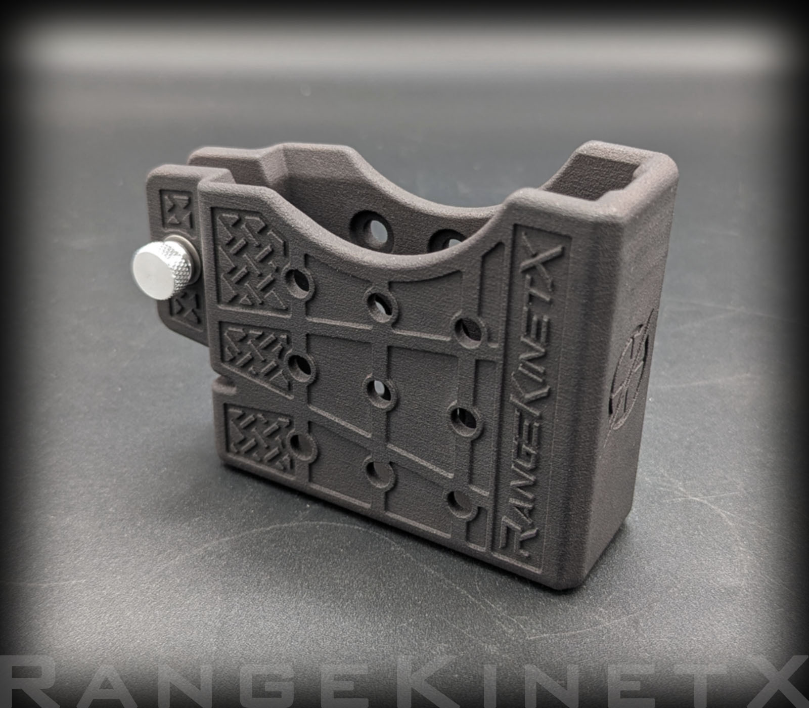 Introducing the AICS/AW Magazine Holster from RangeKinetX, designed to keep dirt and grime away from your magazine and cartridges. Its closed-bottom design, along with a drain hole, protects your cartridges from contamination. The holster features deep chamfers for easy reholstering and a smooth draw.