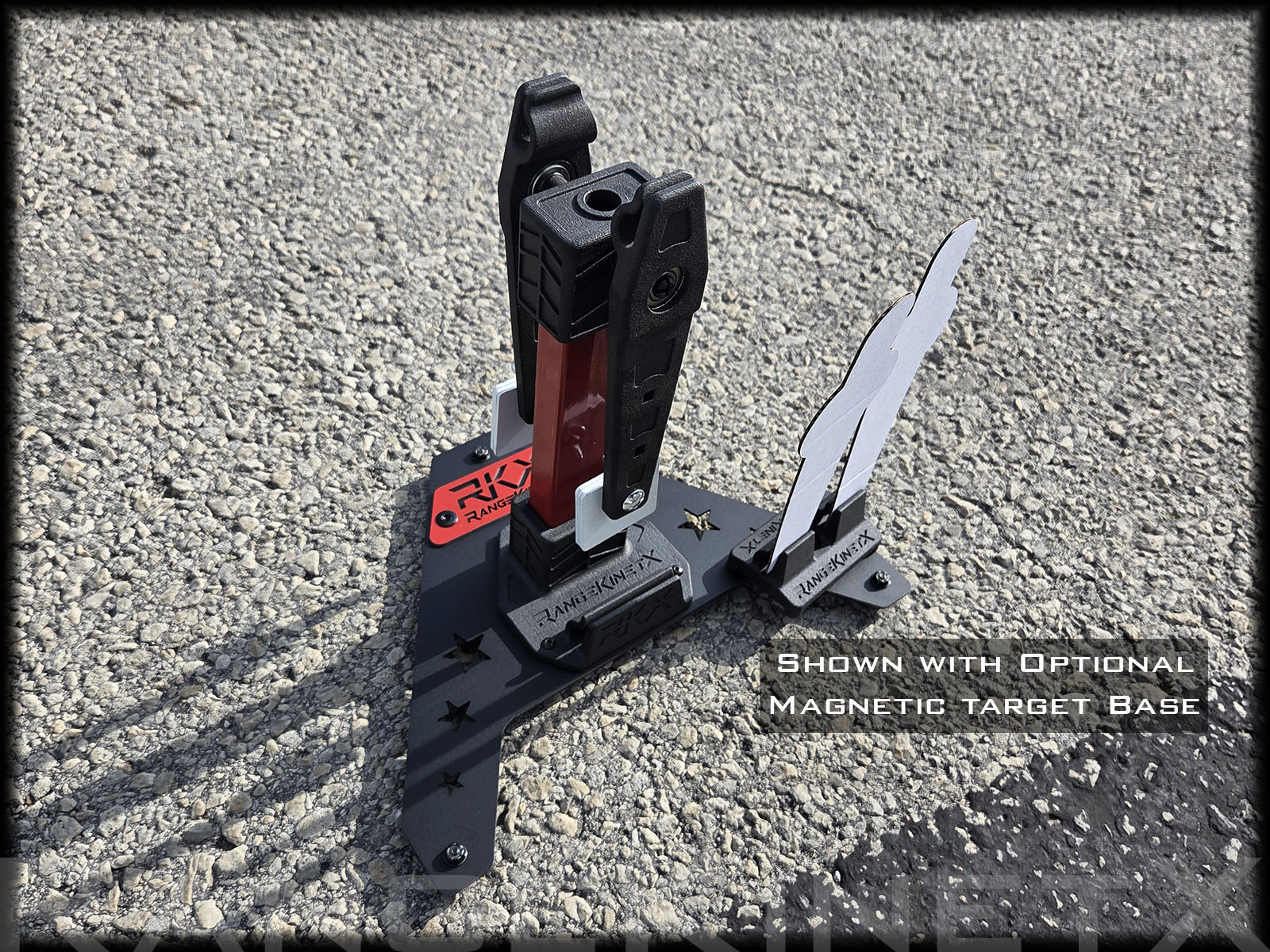 Heavy-Duty Base – CNC laser-cut steel base with rubber feet provides rock-solid stability on any surface. The base also accepts standard 1×2 wood furring strips, giving you the option to raise your target setup for added versatility.